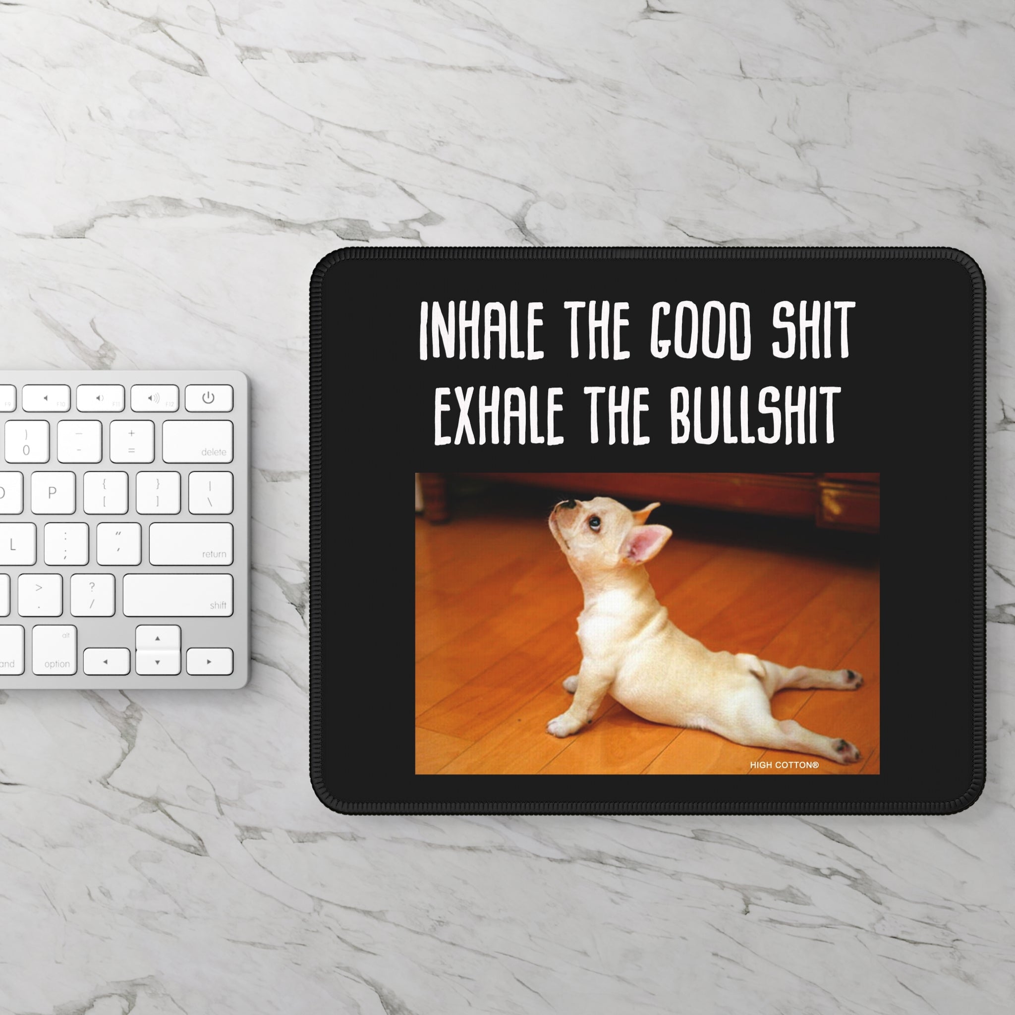Inhale the Good Shit, Exhale the Bullshit - Cute Yoga Puppy Desk Mat - Gaming Mouse Pad