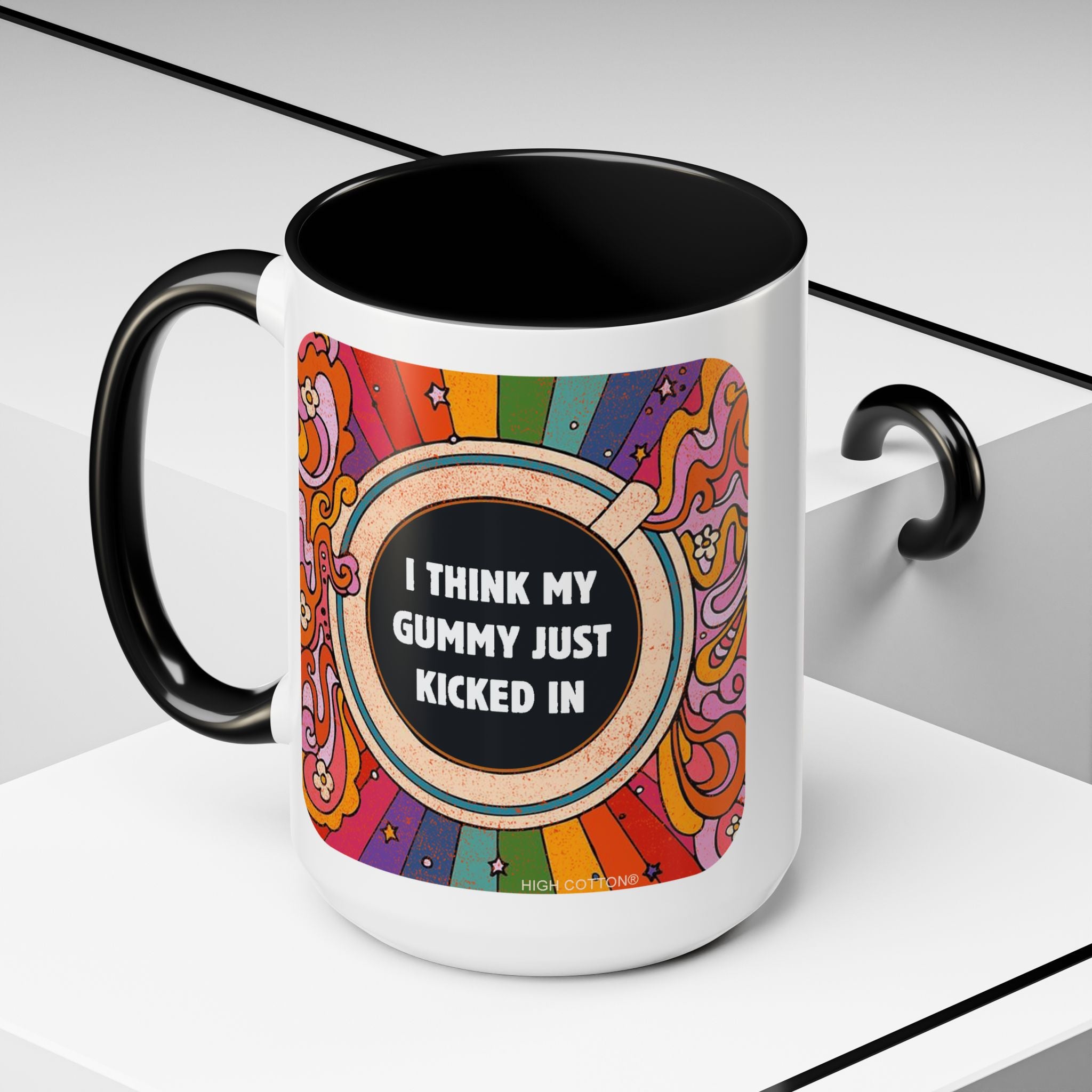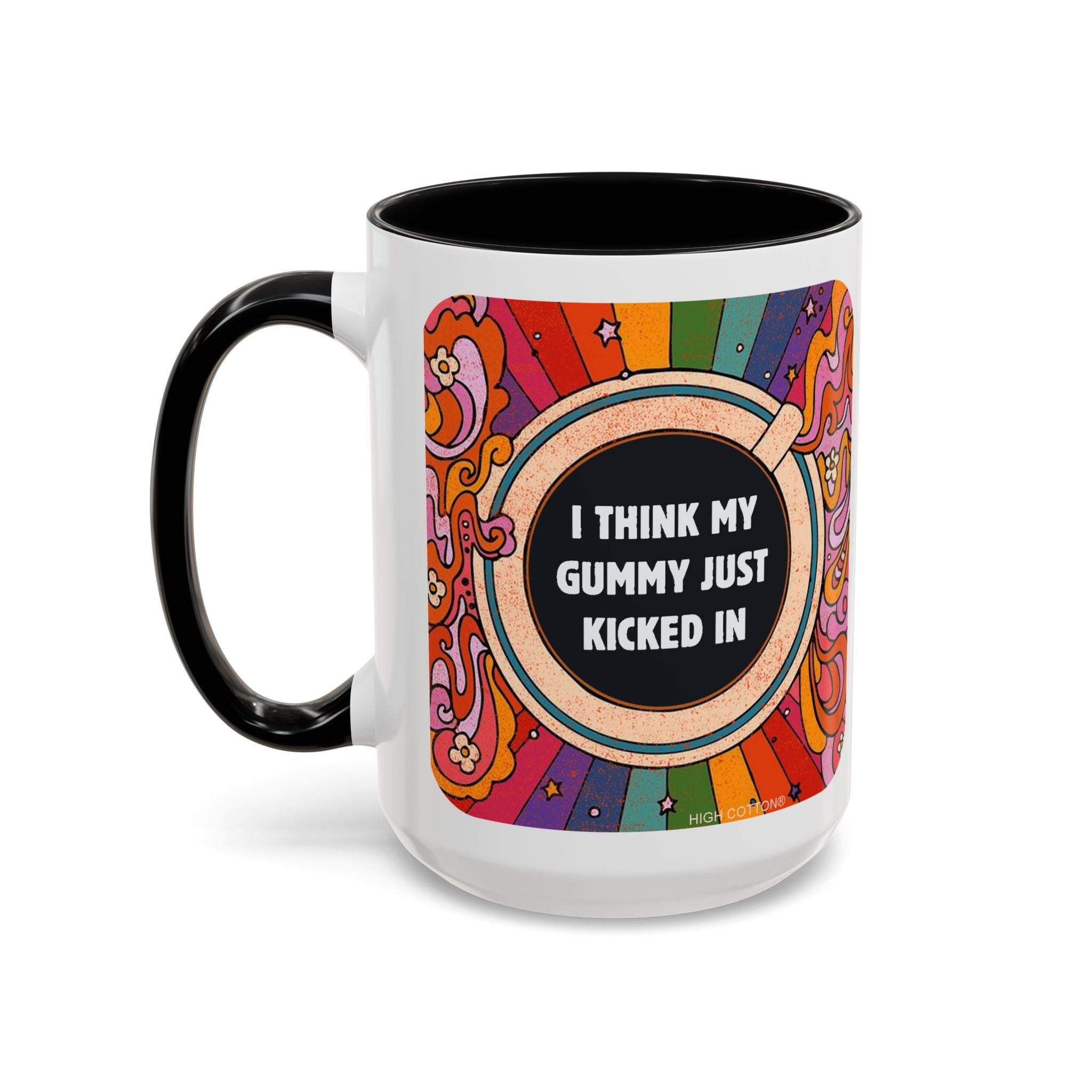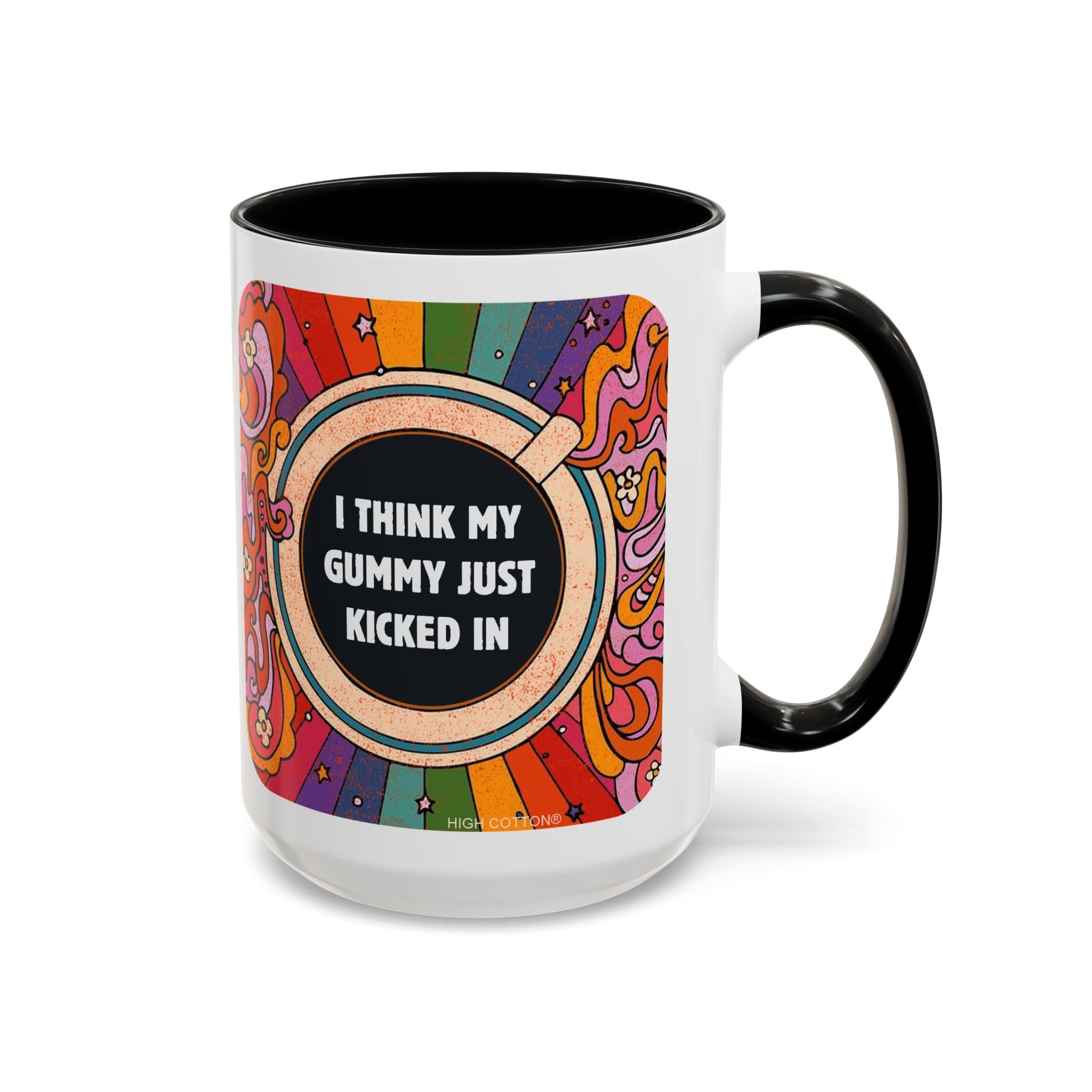 I Think My Gummy Just Kicked In - Retro Psychedelic Accent Mug (15 oz) Coffee Mug