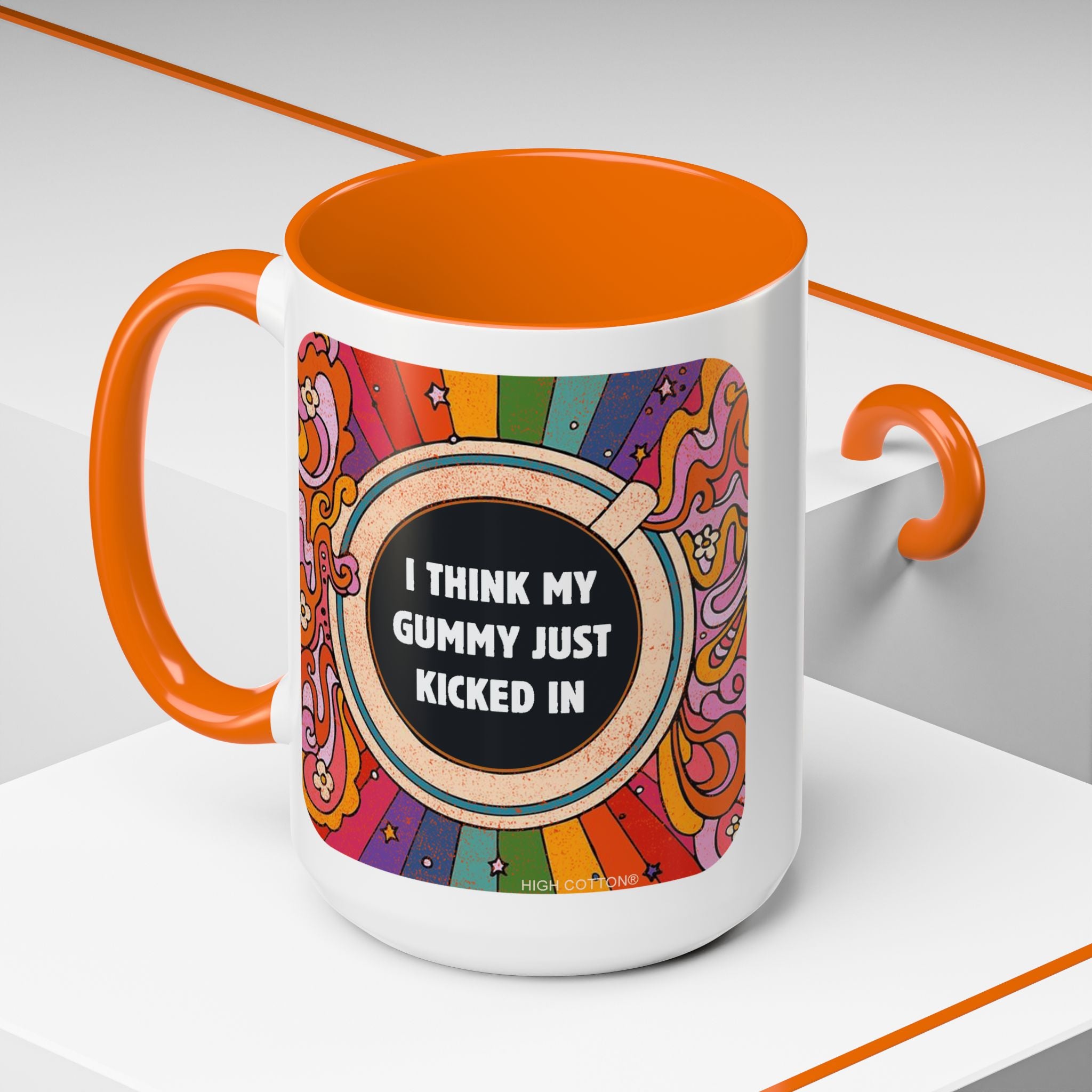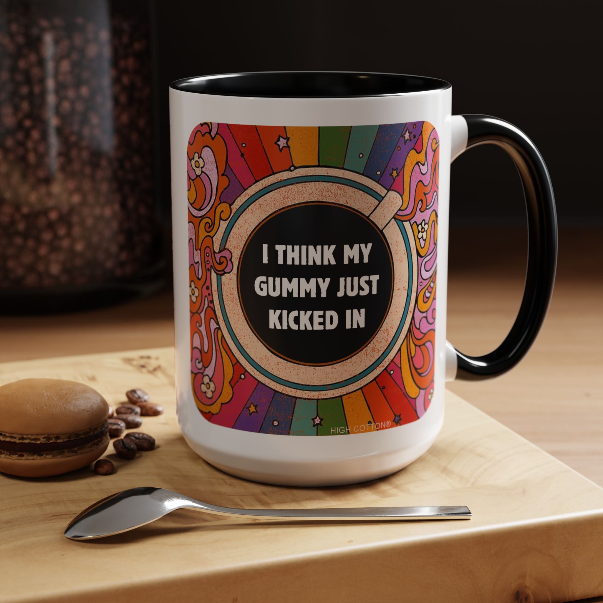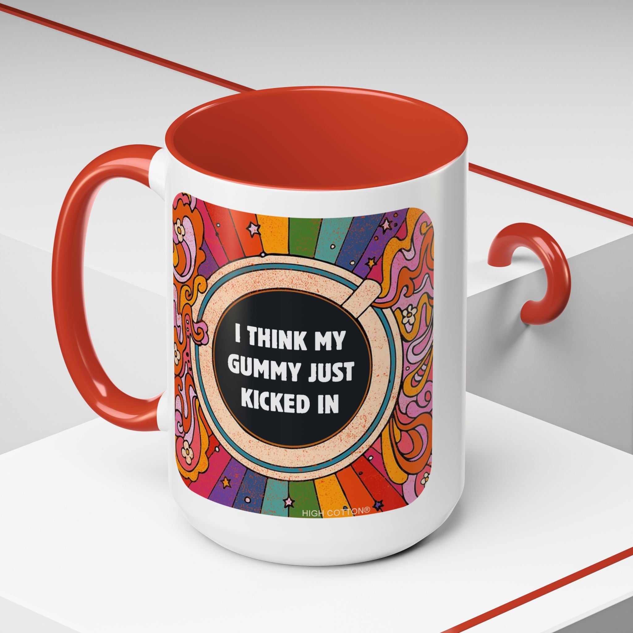 I Think My Gummy Just Kicked In - Retro Psychedelic Accent Mug (15 oz) Coffee Mug