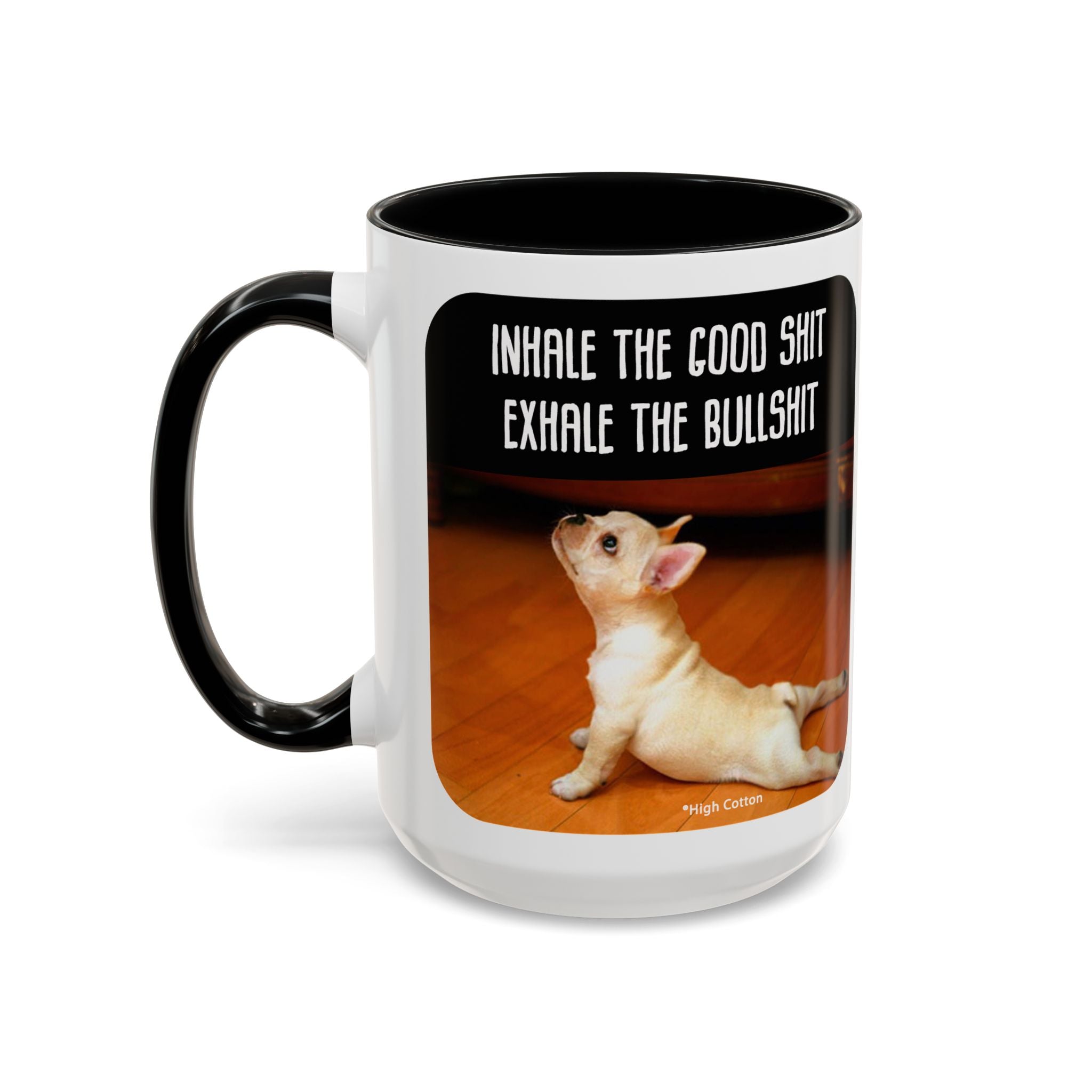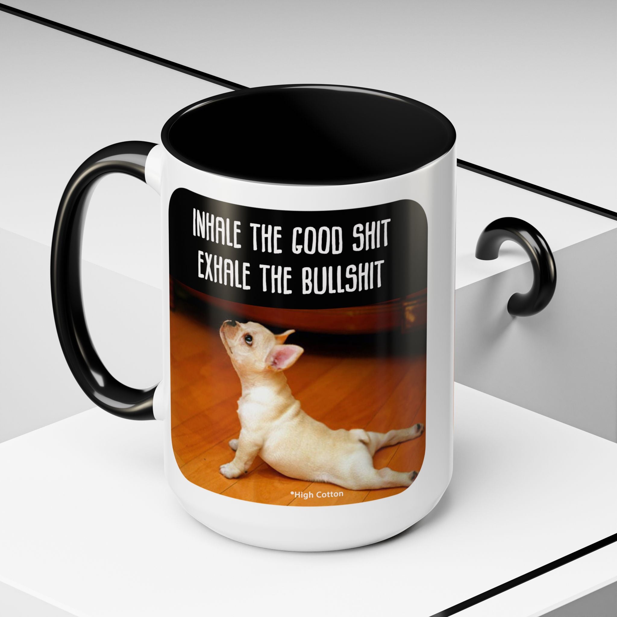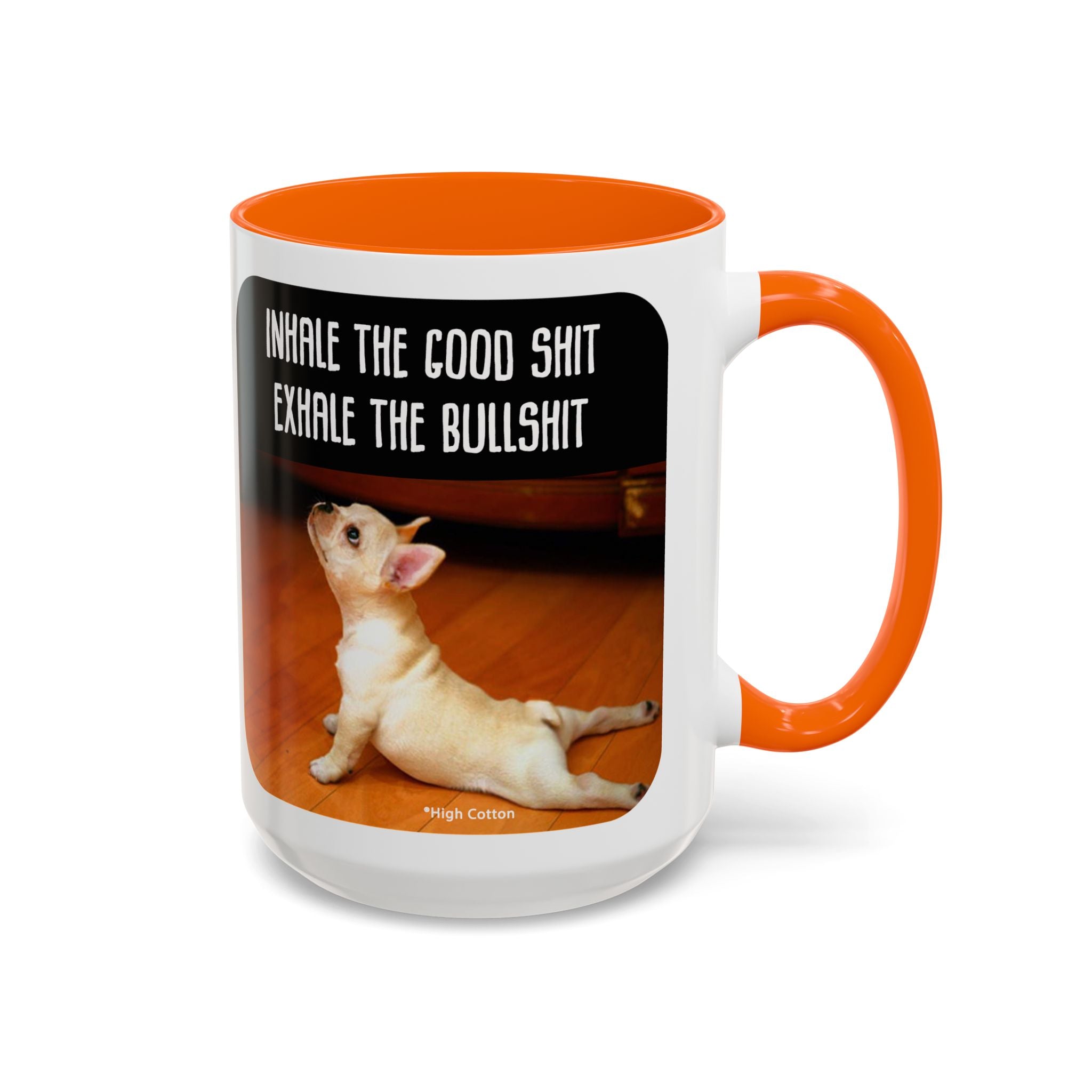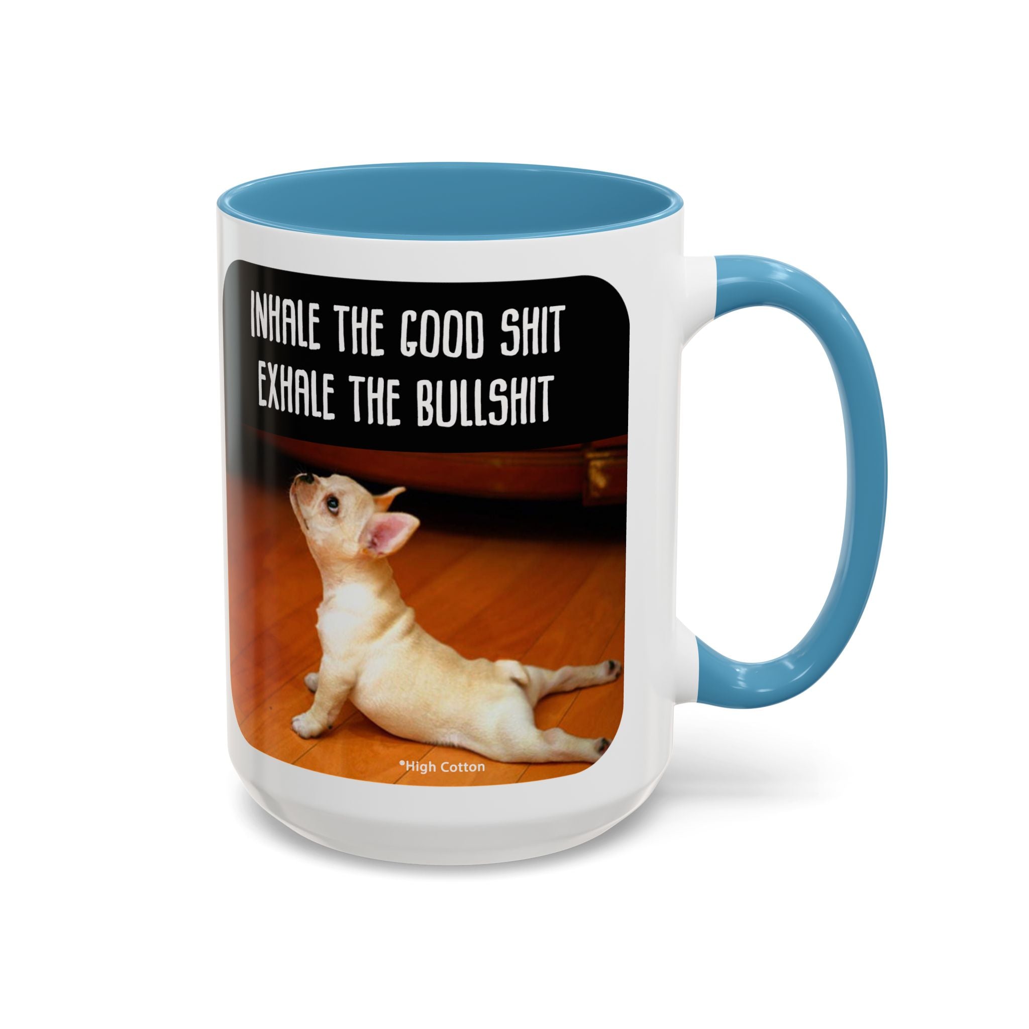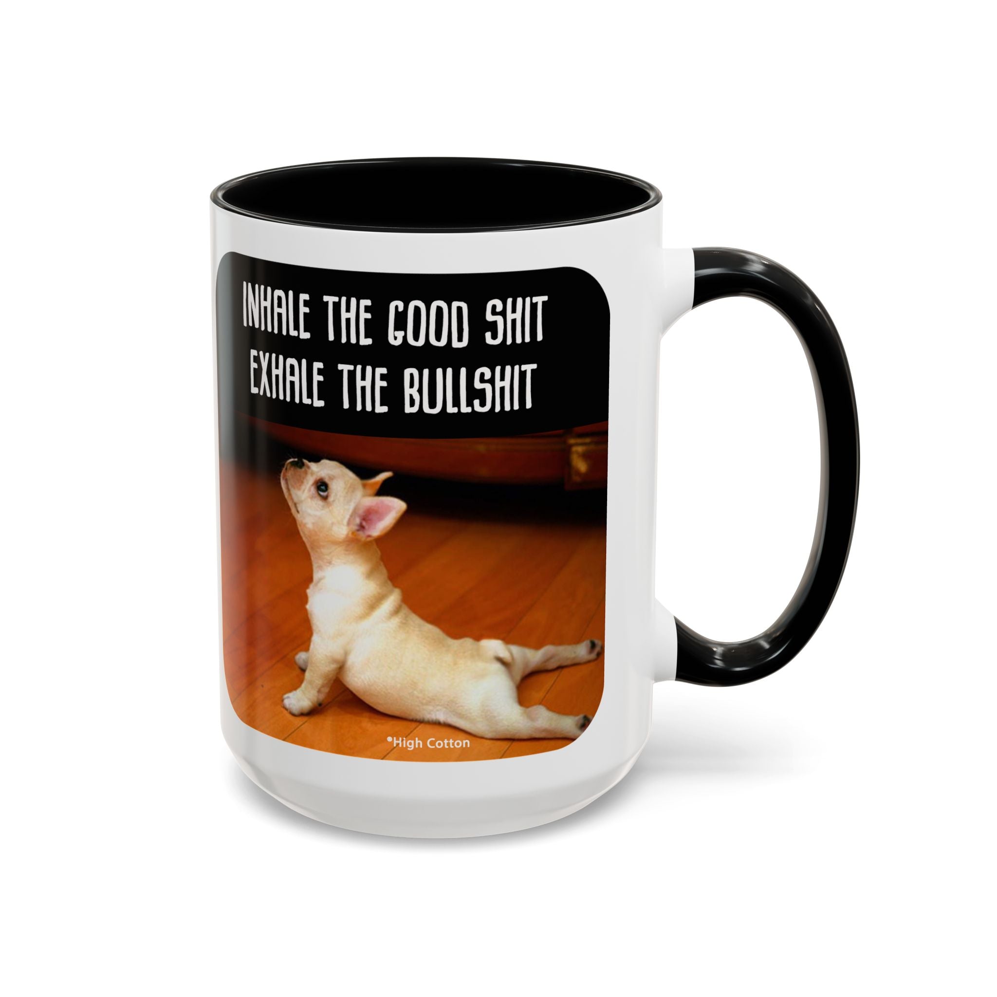 Inhale the Good Shit, Exhale the Bullshit - Yoga Chihuahua Accent Coffee Mug (15 oz)