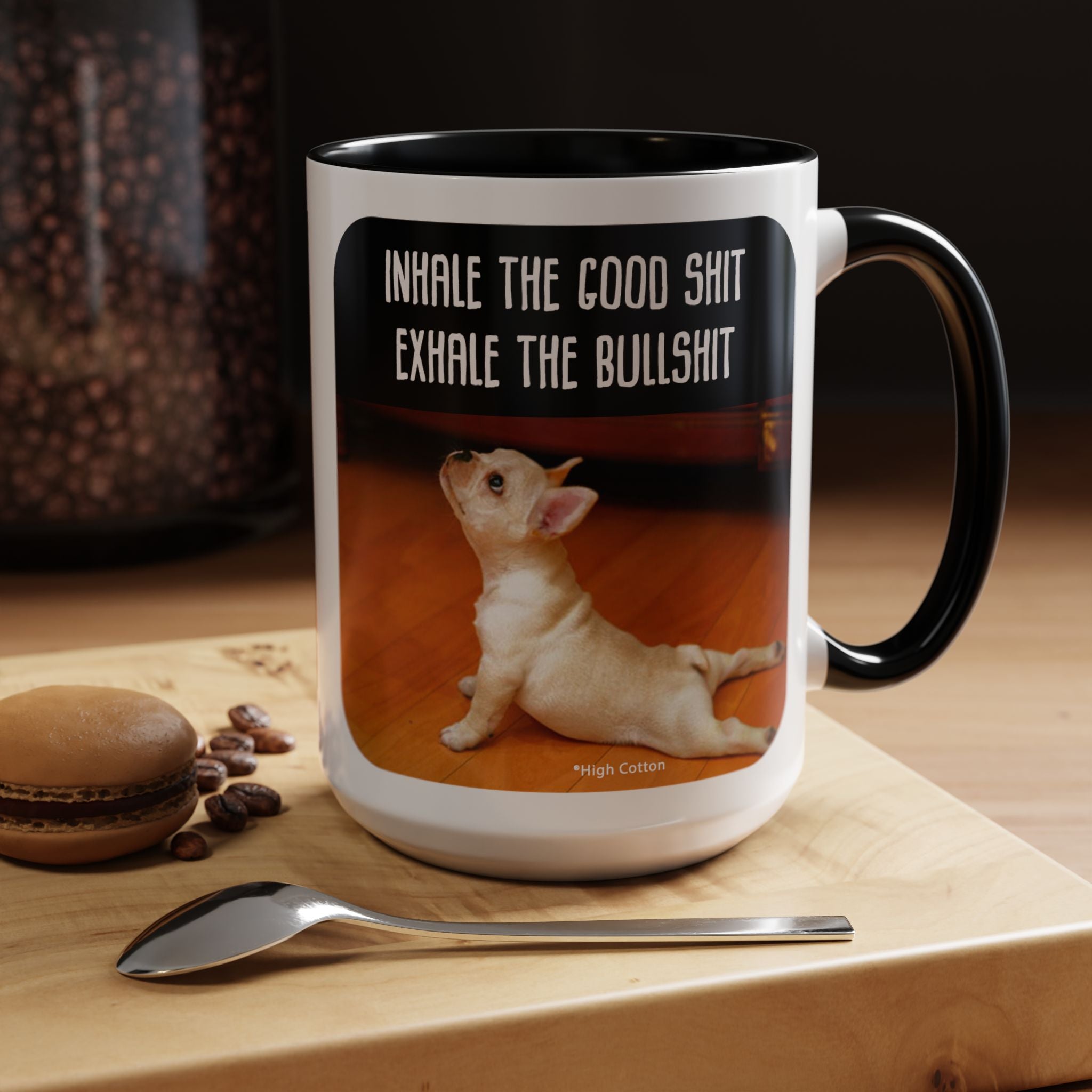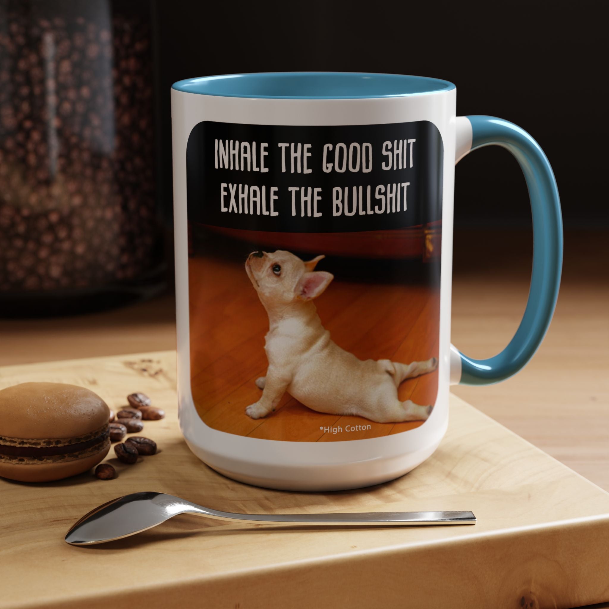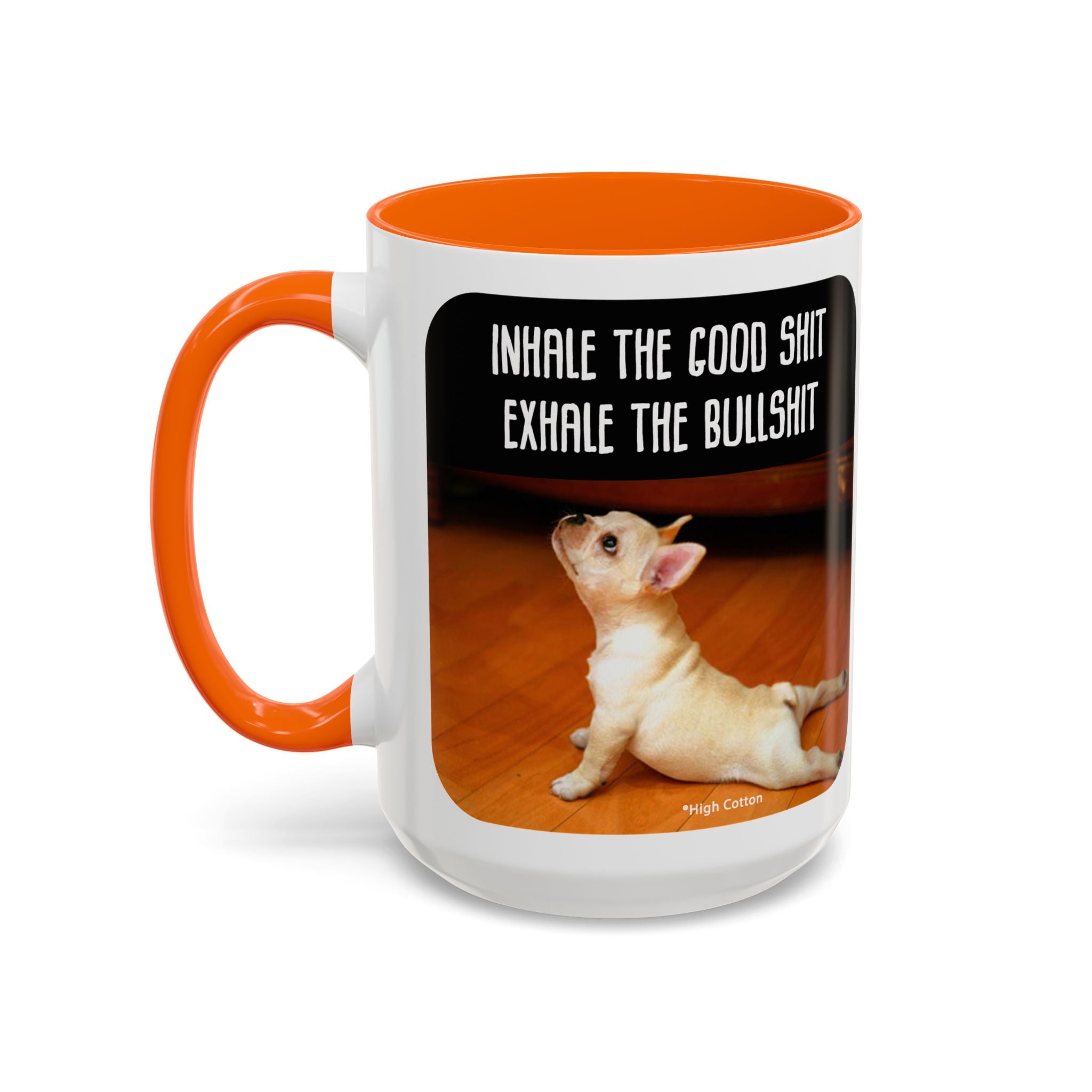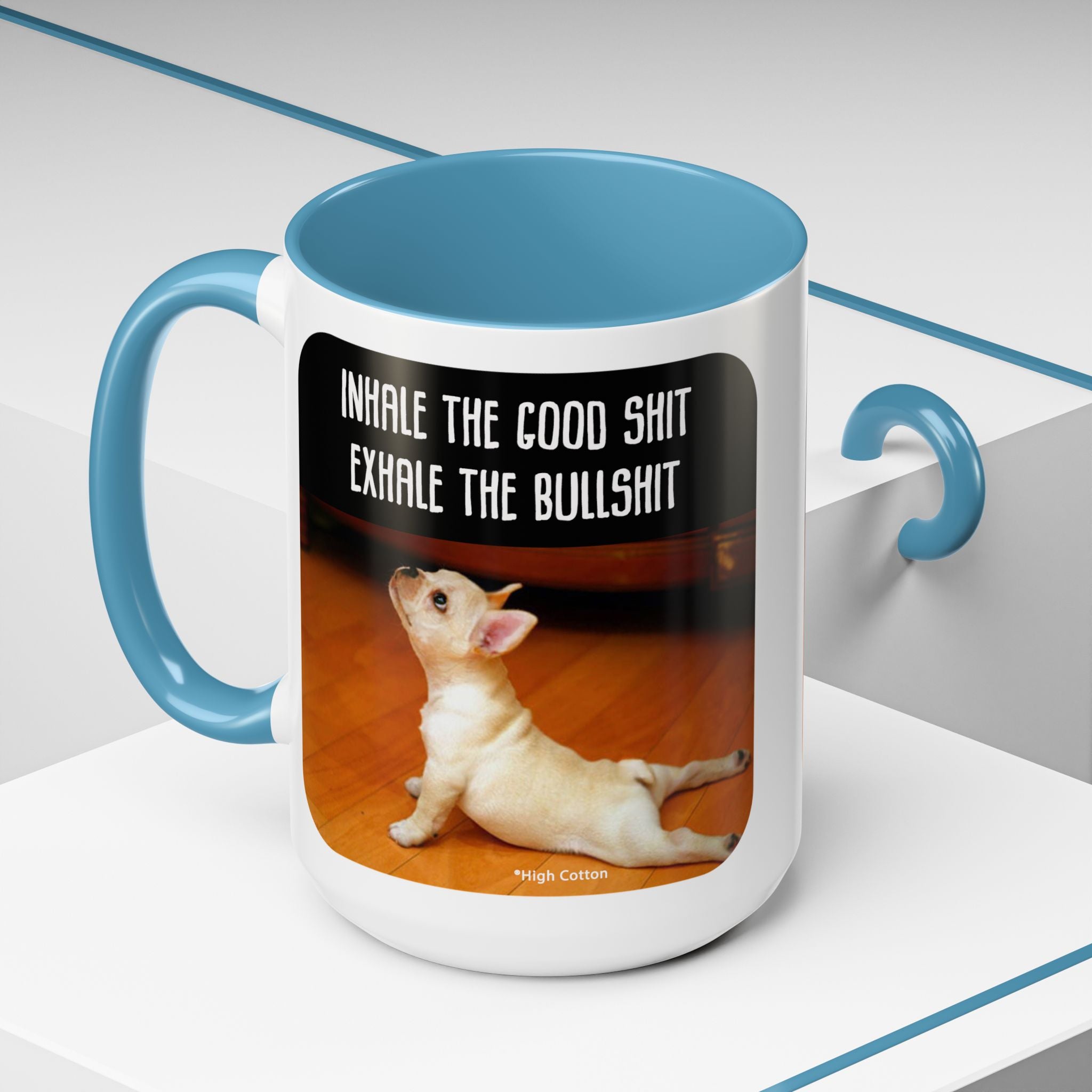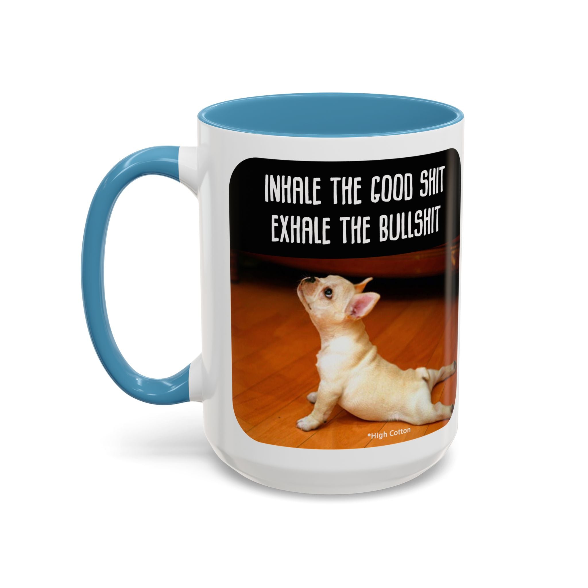 Inhale the Good Shit, Exhale the Bullshit - Yoga Chihuahua Accent Coffee Mug (15 oz)